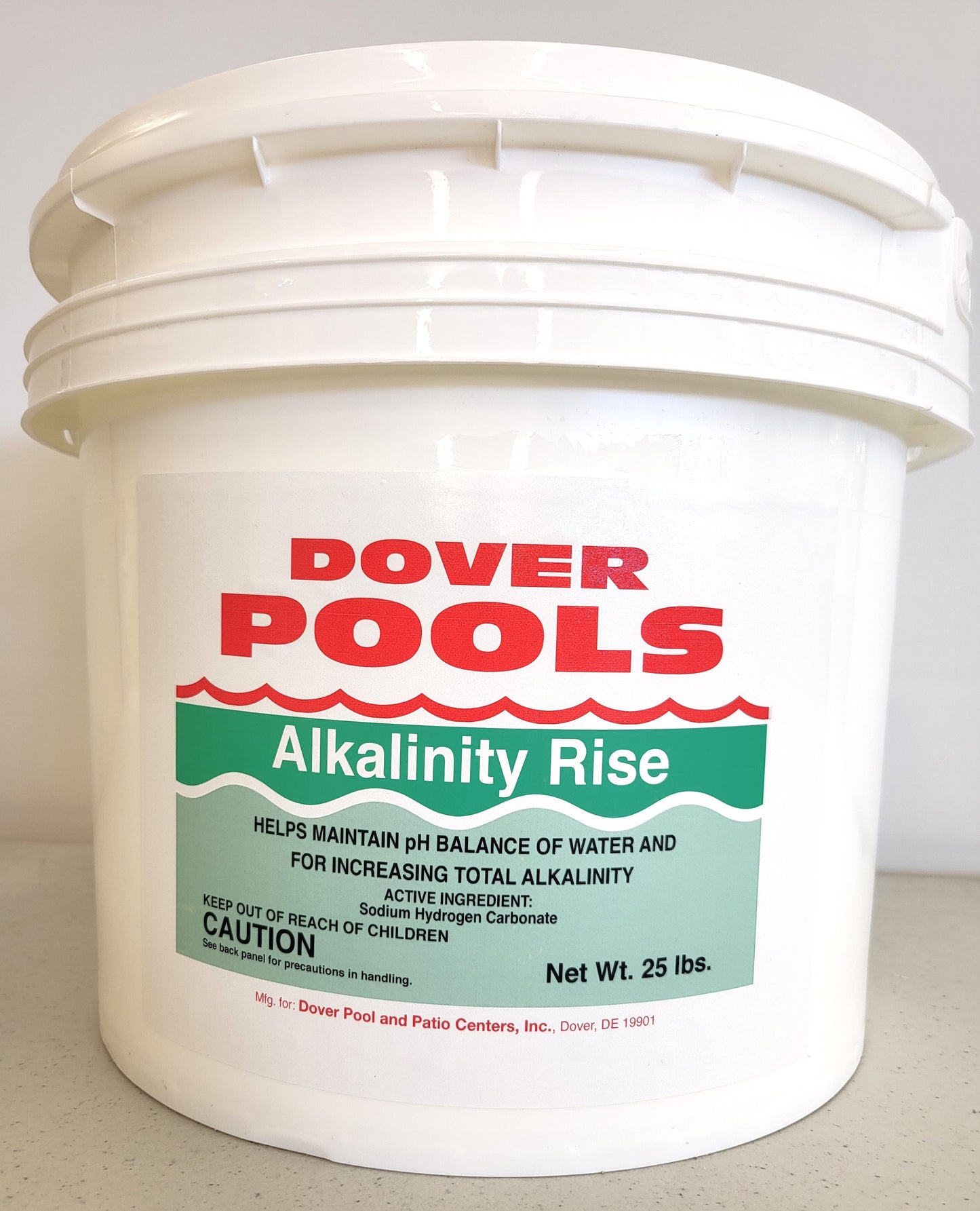 Dover Pools Alkalinity Rise raises total alkalinity in swimming pool water. Maintaining proper alkalinity helps to prevent the pH levels from changing. Keeping your pool water balanced is an important part of maintaining clear and safe swimming pool water, along with protecting your equipment. This product is easy to apply, just broadcast it directly across the pool surface.