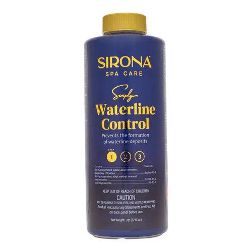 Sirona Simply Waterline Control is the first step in the Simply 3-Step System, and is used at start up and weekly. The liquid formula prevents the formation of waterline deposits in spas and hot tubs.